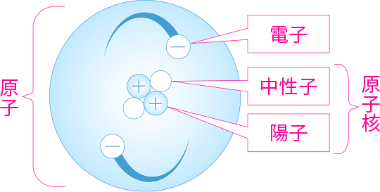 原子の中心には原子核(プラスの電気を帯びた陽子&陽子と同じ数の中性子)があり、