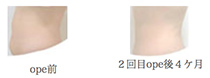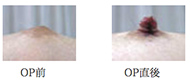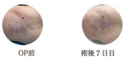 当院オリジナルの方法ではありませんが2種類のレーザーを使い分けて治療しています。何回かの照射が必要になることもありますが、この方法は優れていてほとんど傷あとを目立たせることなく仕上げることができます。処置した翌日からテープなしで洗顔などができます。